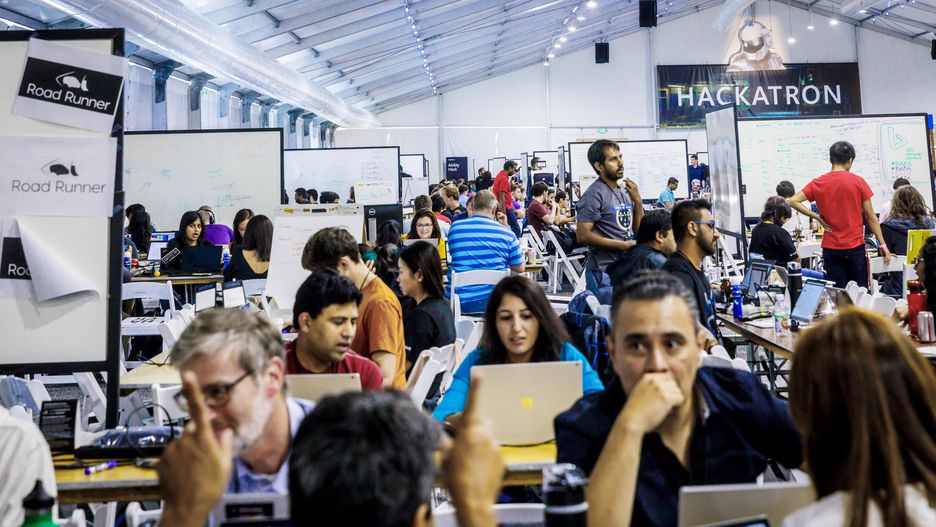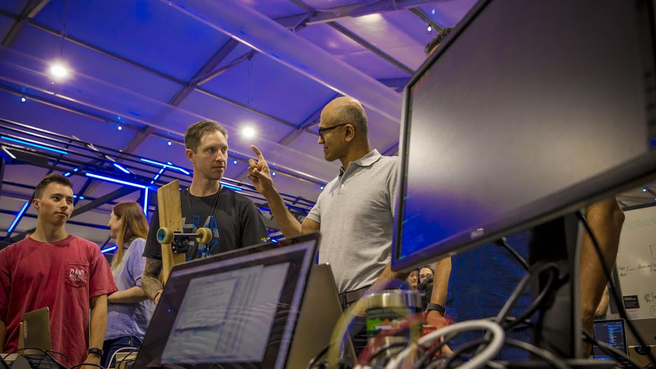 마이크로소프트가 시장의 예상치를 크게 웃도는 분기실적을 발표한 날로부터 6일 뒤, CEO 사티아 나델라(Satya Nadella)는 워싱턴 주 레드몬드에 있는 본사에서 열린 해커톤에 방문했다. 3일 동안 열리는 해커톤에는 23,500명의 직원이 참여하고 있었다.