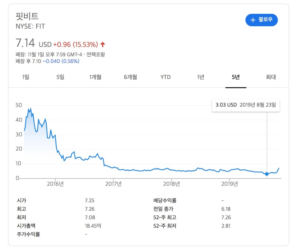 뭐 2015년 상장 이후 47불까지 올랐던 주가가 반의 반의 반토막이 나고 있던 핏빗 입장에서도, 꽤 괜찮은 딜이었을 듯 해요.