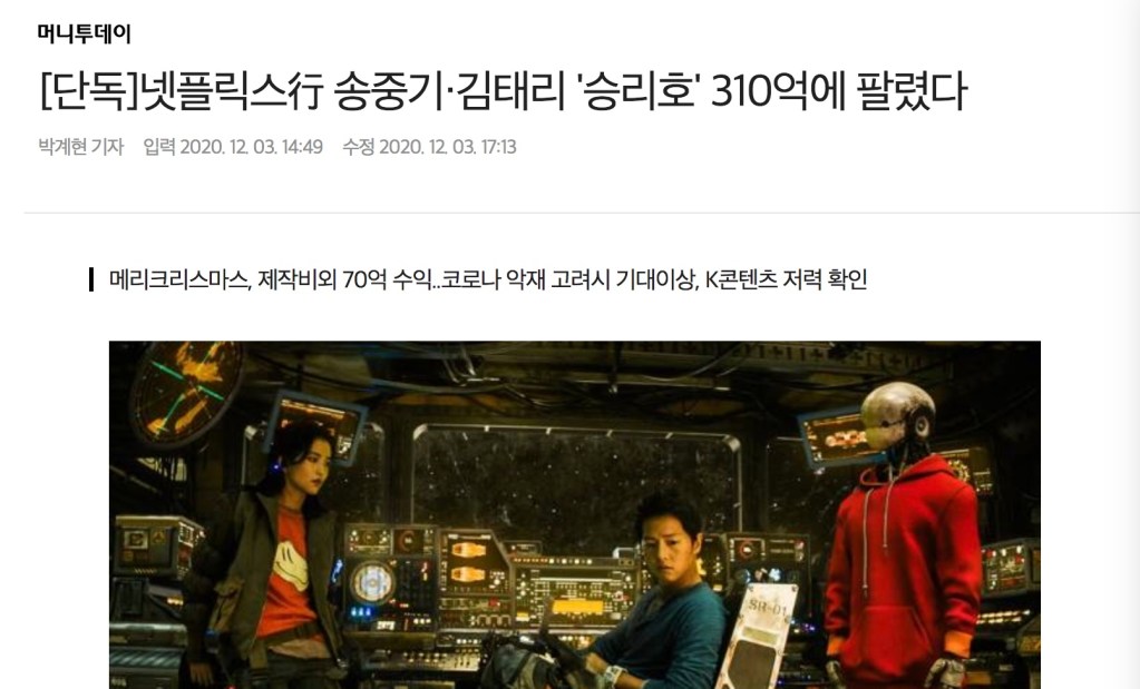 넷플릭스는 왜 승리호에 310억이나 쓴걸까?”의 5개의 생각