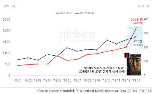 그리고 그로부터 1년 반 후, 2019년 초, 옥자 시절보다 국내에서 열 배 커진 넷플릭스는 이랬죠.