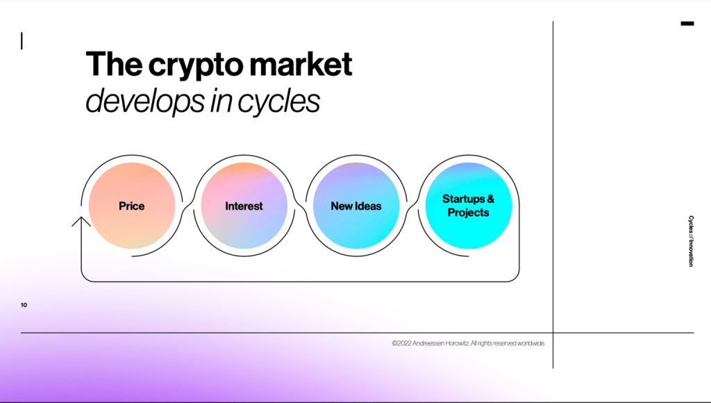 그래서 우리는 이것을 가격-혁신의 사이클이라고 정의했고, 이 사이클은 처음 비트코인이 등장했던 2009년부터 크립토 시장이 발달하는 주요한 원동력이었습니다.