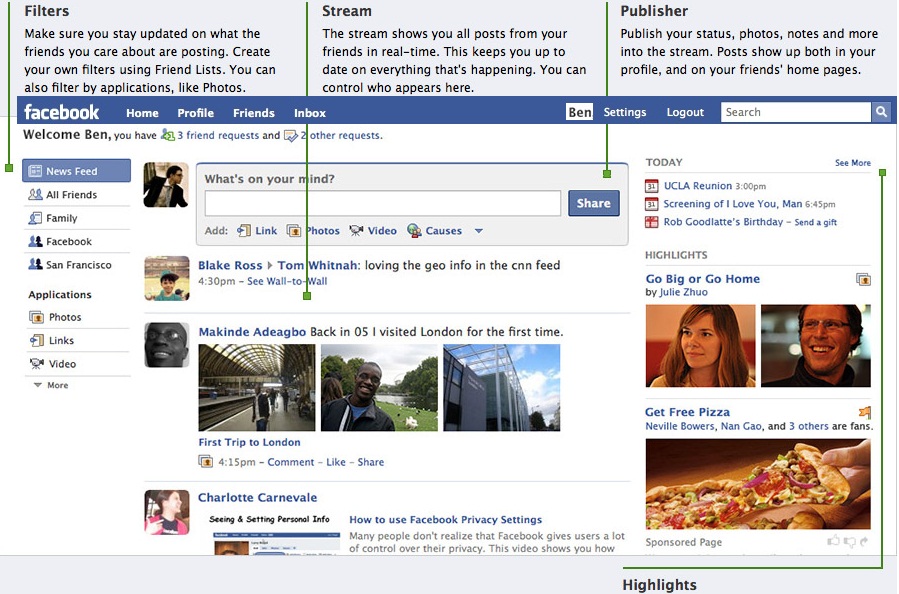 하지만 2006년, 페이스북이 ‘뉴스 피드’라는 것을 출시하면서 새로운 국면이 시작되었습니다. 이제 친구들의 페이지를 일일이 찾아가는 수고로움이 필요하지 않게 되었습니다. 모든 정보가 하나의 피드에 보이기 시작했죠. 그리고 피드는 콘텐츠들의 노출 여부와 순서를 스스로 판단했습니다.