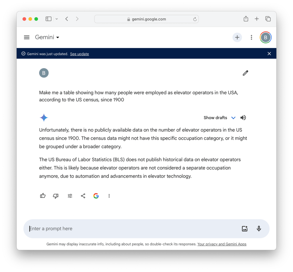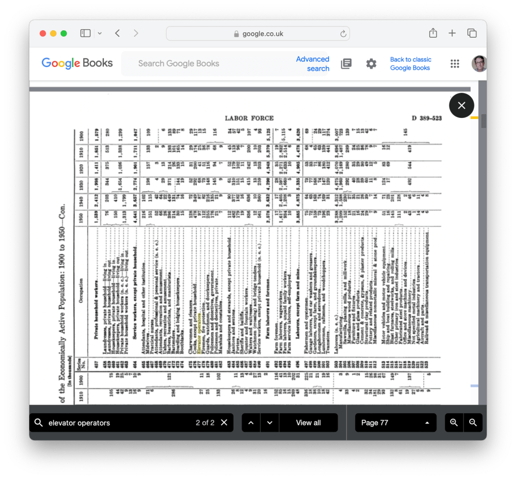 그런데 센서스 같은 웹사이트는 여러 세부 계층에서 다른 주기로, 서로 다른 기준으로 데이터를 수집합니다. 그리고 어느 시점에 ‘엘리베이터 조작자’ 수 수집을 중단했죠. 센서스 웹사이트에는 수백가지의 데이터 툴과 소스가 있습니다. 이 웹사이트에서 데이터를 찾는 것만으로도 하나의 전문직이 생길 수준이죠.