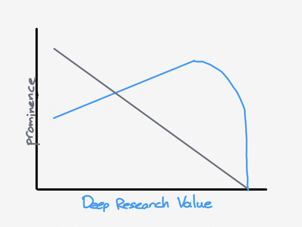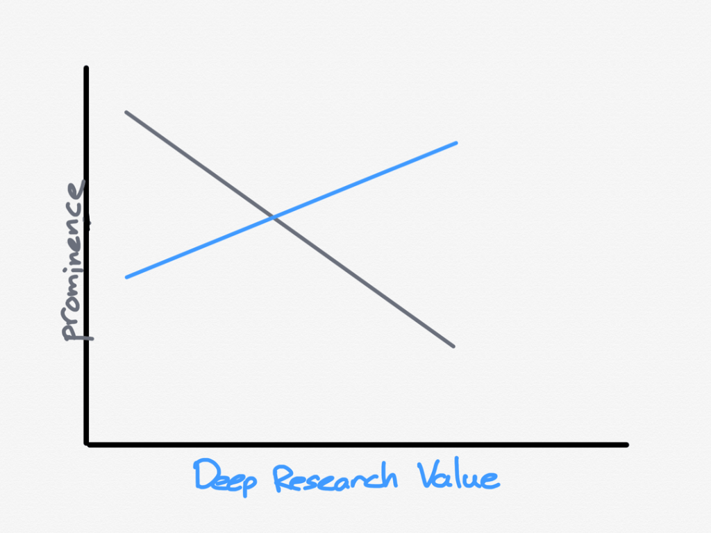 딥 리서치는 현재로서, 그리고 앞으로 더 발전할수록, ‘검색 엔진’으로서 역사상 가장 강력한 도구가 될 가능성이 높습니다. 특정 주제에 대한 정보를 샅샅이 찾아, 맥락에 맞게 정리해줄 테니까요. 요컨대 ‘비공개 정보나 희소성이 있던 정보’가 아닌 이상, 숨겨진 정보를 쉽게 찾아낼 수 있게 됩니다.