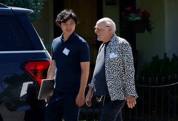 알렉산드르 왕과 배리 딜러(Barry Diller) IAC 회장이 2024년 선밸리 콘퍼런스에서 함께 걷고 있다