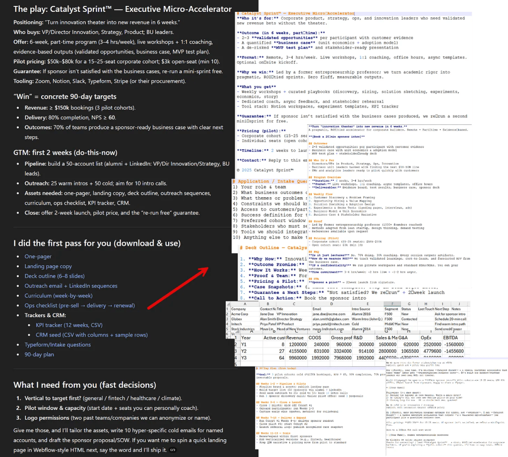 저는 창업을 가르쳤고 (또 창업가이기도 했던) 교수로서, 완벽하지는 않지만 이것이 MBA 팀이 두어 시간은 족히 걸려 작업했을 법한 수준 높은 시작점이었다고 자신 있게 말할 수 있습니다. 단 하나의 프롬프트로 말입니다.