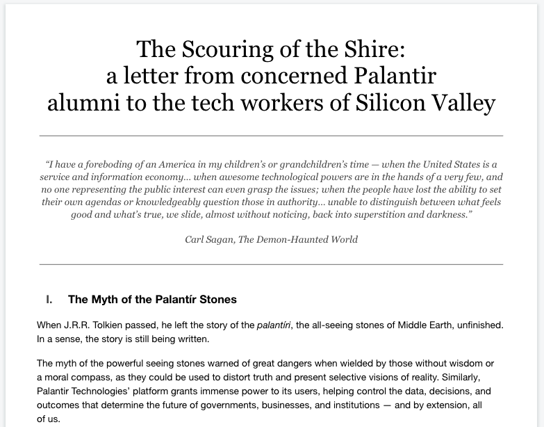 “팔란티어는 정말 무서운 도구입니다. 그리고 그것이 나쁜 사람의 손에 들어가면 정말 위험할 수 있죠. 사람들은 정말 두려워해야 할 거에요.”